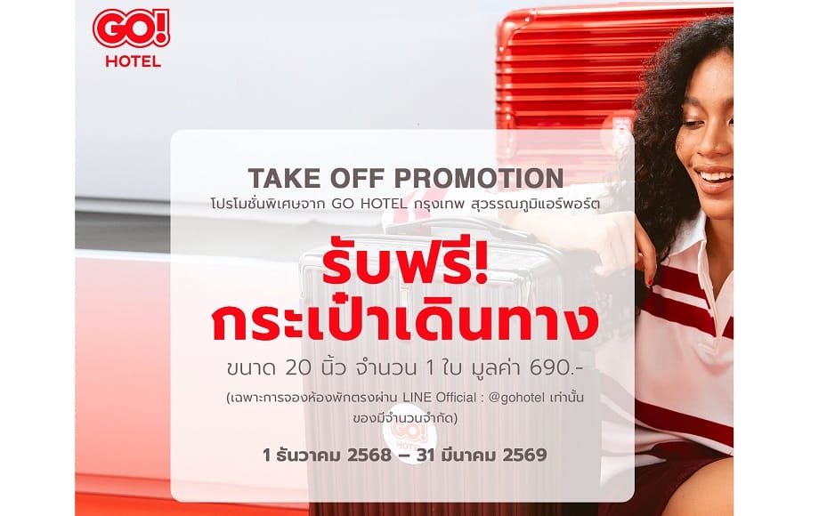 Travelers flying in or out of Bangkok can now enjoy an exciting new accommodation experience at Go Hotel Bangkok Suvarnabhumi Airport. The property, which is the largest flagship of the Go Hotel brand under Central Pattana management, has launched an attractive stay promotion that combines comfort, value, and convenience. Guests booking their rooms through the hotel’s official Line account between December 1, 2025, and March 31, 2026, will receive a complimentary 20-inch travel suitcase as part of this special campaign. Located just ten minutes from Suvarnabhumi Airport, the hotel follows the concept of “Great Sleep. Great Price. Right on Time,” designed for those who want a restful night before an early flight or a smooth stay after landing.