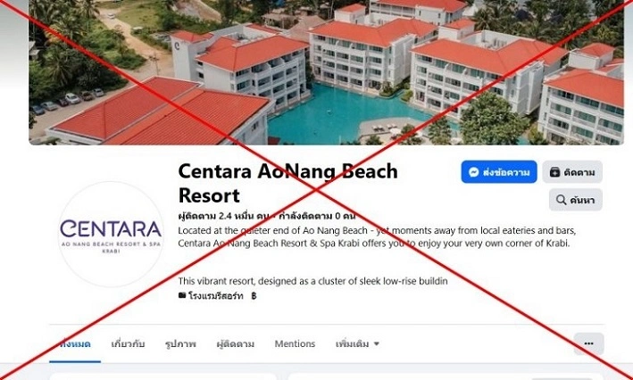 The case centers on a Facebook page operating under the name “Centara AoNang Beach Resort,” which falsely claimed to represent the legitimate Centara Ao Nang Beach Resort & Spa Krabi. At first glance, the fake page appeared convincing, amassing around 24,000 followers and using professional-looking images identical to those seen on the real hotel’s official channels. Many travelers, especially those hunting for promotions or last-minute deals, could easily mistake it for an authentic page.
